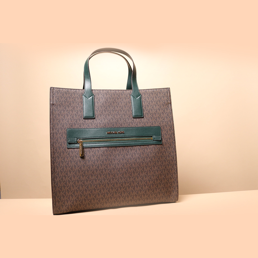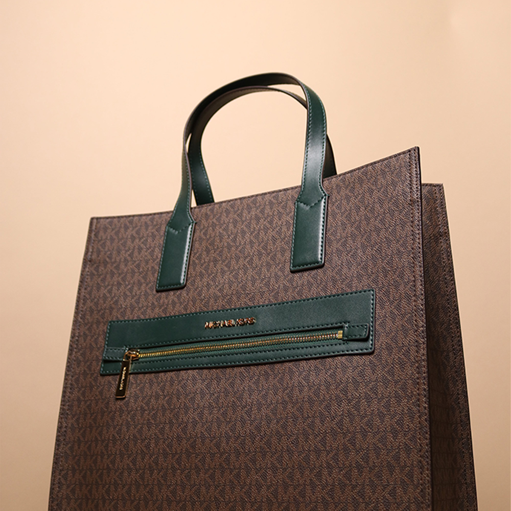 Elevate your accessory game with the Large MK Print Bag in green and brown – a fusion of style, functionality, and unparalleled craftsmanship. Make a statement that speaks volumes about your impeccable taste and refined sense of fashion.
