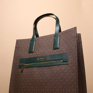 Introducing the epitome of style and functionality: the Large Micheal Kors Print Bag in captivating green and brown hues. Crafted with meticulous attention to detail, this bag seamlessly merges luxury with everyday practicality, making it a must-have accessory for the modern trendsetter.